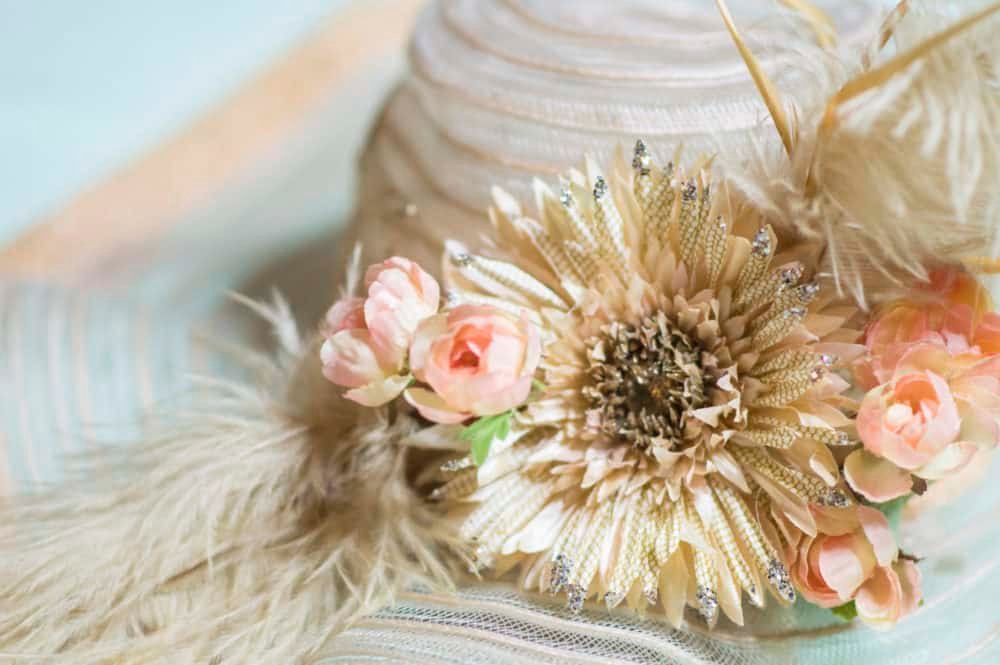 To finish off the hat, glue on any small accents you have. I added some small pink flowers around the big one.And that is it! Now you have an amazingly stylish hat that nobody else will have and you made it yourself for a fraction of the cost! DIYing it is so much fun! I would love to see your hat pictures on our Facebook page! And if you liked this, here is a DIY Rainbow Brite Halloween costume you could try (I just aged myself)!