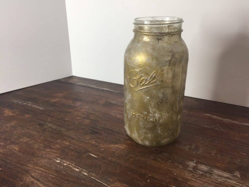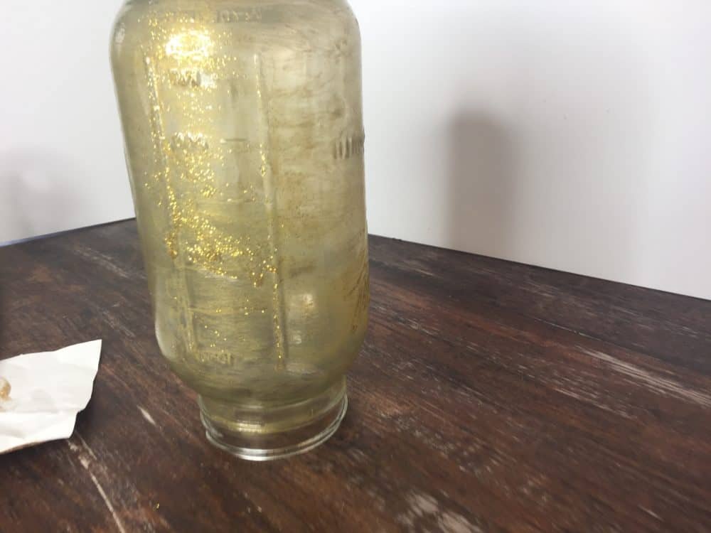 Paint the entire jar and allow it to dry. Once mine was dry, I dabbed on some gold glitter paint and added some pink chalk paint accents to give it some extra texture.